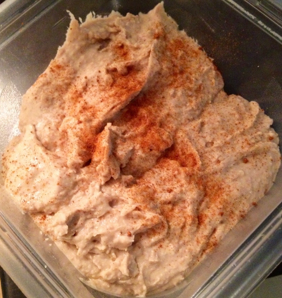 I’m convinced this dip can be made with any bean, as the original recipe from Lemons and Anchovies called for cannelini beans, but all I had was pinto. I realized last minute that my friend’s housewarming party was a pot luck and just kind of threw this together. So in addition to substituting a different kind of bean, I also substituted coconut oil for olive (I had run out of olive!) and I didn’t have a lemon or lemon juice so I used apple cider vinegar – I figured that one acid would work in place of the other, and it did!
