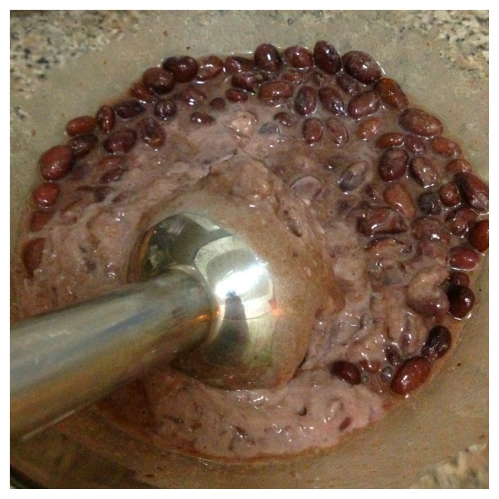 I drained the beans but didn’t rinse them – does anyone know whether this is a good idea? I know bean soaking water is no good, but what about what’s in the can? Anyway, it tastes better if you keep the goopy can part, so I did.