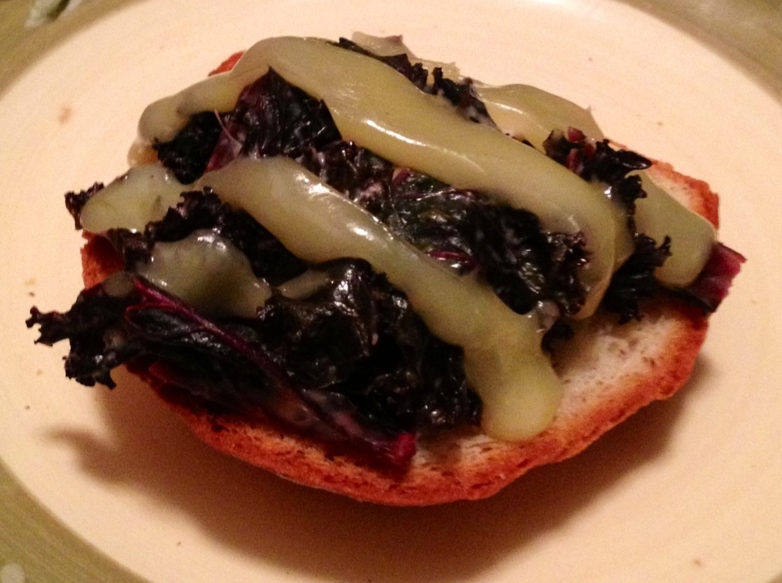 Steam the kale, mix everything else together, mix it all together, and done. Kale cooked down to nothing, and I was able to practically eat all of it in one sitting. I also put some on toast with melted gruyere, because what could be bad about that?