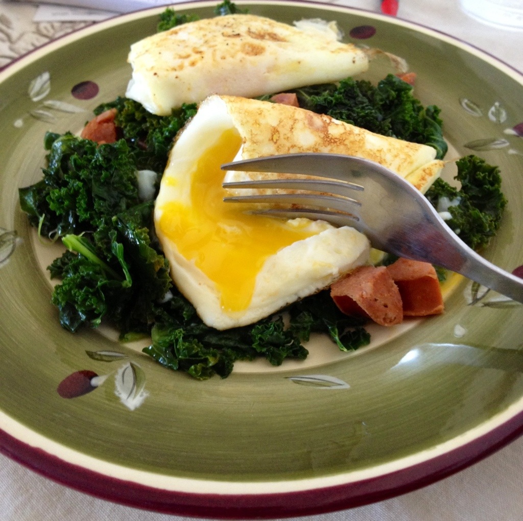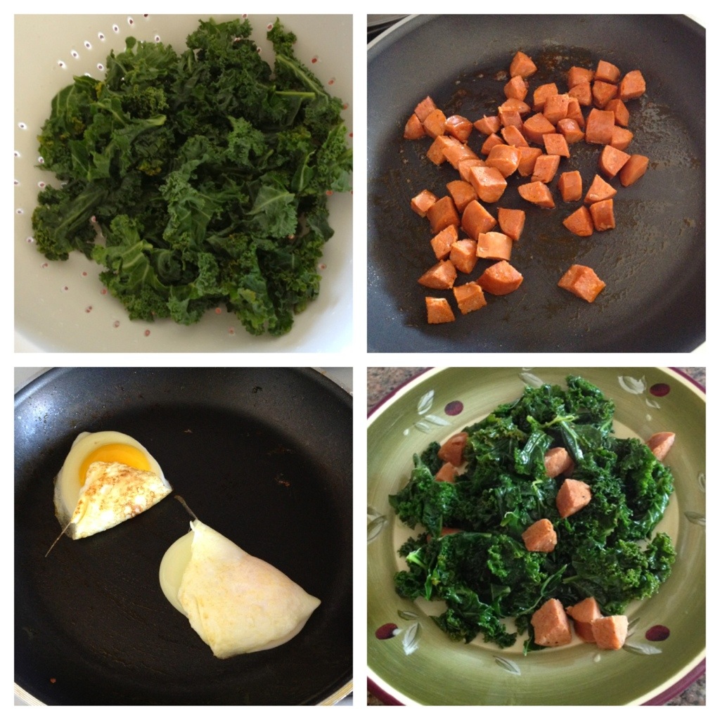 3) Sauté the kale in with the chorizo. I added a little pepper, but I didn’t add any salt – didn’t seem like it needed it.