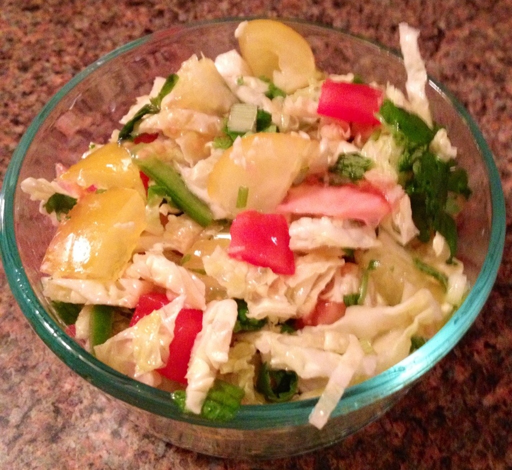 Some friends were supposed to come over to brunch and I was going to make this huevos rancheros variation with cabbage I had left over from the parsnip gratin. Well, brunch got cancelled, and so in addition I then had tomatoes, an unidentified somewhat spicy pepper, cilantro, scallions, and some other random stuff that didn’t make it into this recipe, but will be appearing shortly!