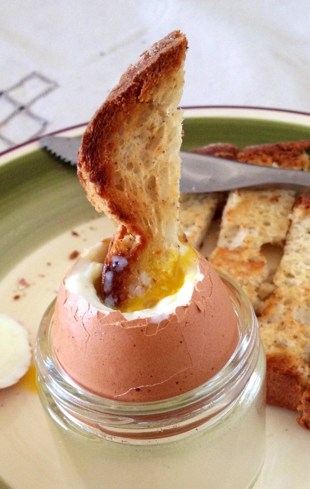 I have been obsessed with Oeuf à la Coque ever since visiting a friend in Miami years ago when his amazing French wife made it for me. But I’d never attempted to make it for myself until now! Part of the inspiration was reading about how good raw egg yolk is for you. Raw seemed a little extreme, but almost-raw I can do – and it’s delicious!!