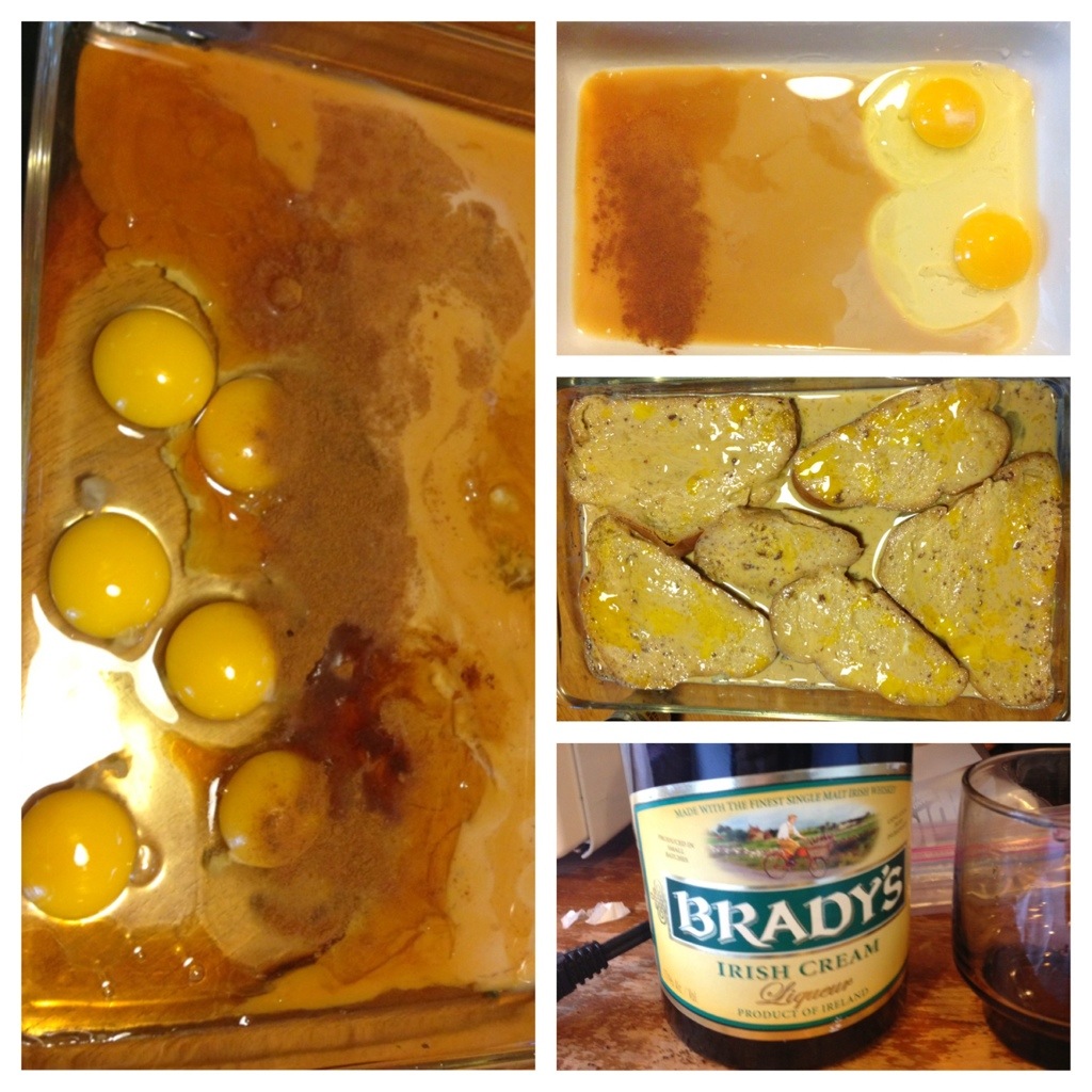 I got the recipe idea from Spa Bettie (who actually uses silken tofu instead of eggs to make her French toast vegan – although I’m pretty sure Irish Cream has cream in it, so…). She uses Bailey’s in her recipe. We used Brady’s in ours because it was way cheaper, but then I found this review where, if you check out comment #2, it actually sounds like we made the superior choice! Good for us.
