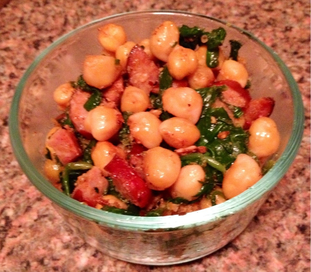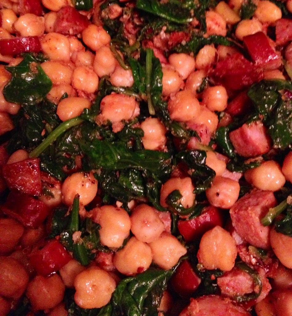 So chorizo is amazing – I’m constantly craving it, and also constantly looking for new recipes that incorporate it. I’d also bought spinach, so googling the two led to this recipe from the New York Times which also featured chick peas.