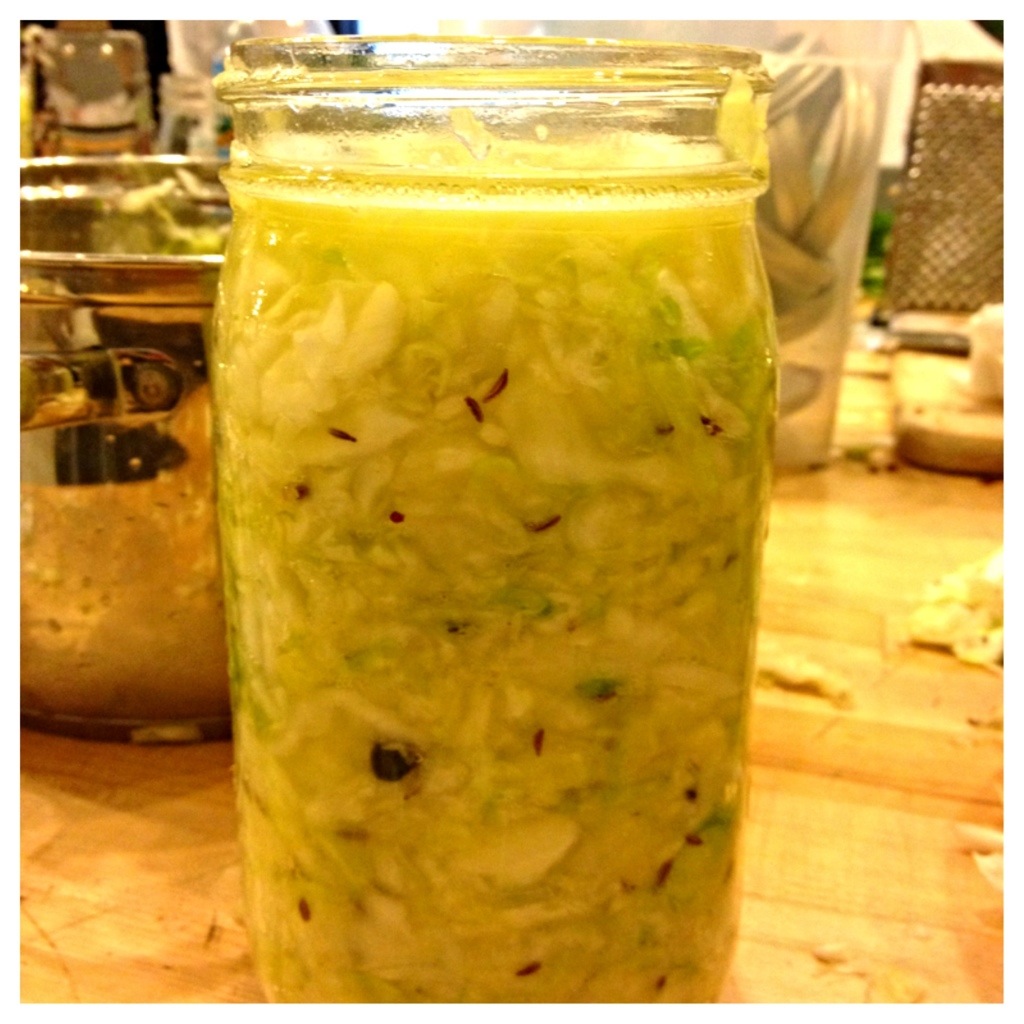 I’m not super familiar with sauerkraut, at least not with homemade, so I’m not sure if it tastes the way it’s supposed to taste. But it tastes good – sour and crunchy (and a little fizzy?). And fermented foods are supposed to be so good for you, so, awesome!