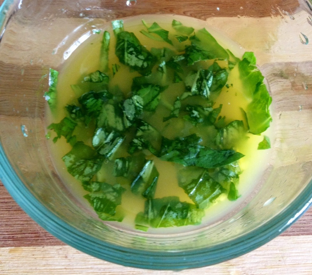 – Dressing made from honey, a citrus (they said lime juice, I used orange juice), and a fresh herb (they said mint, I used basil)