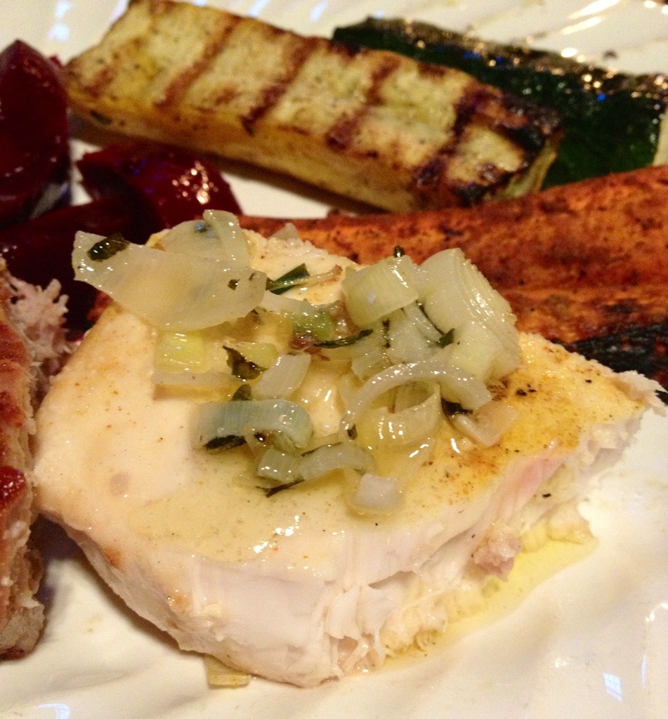 Then, while the fish grilled, we simmered butter with leeks, chives, oregano, and jalapeños.