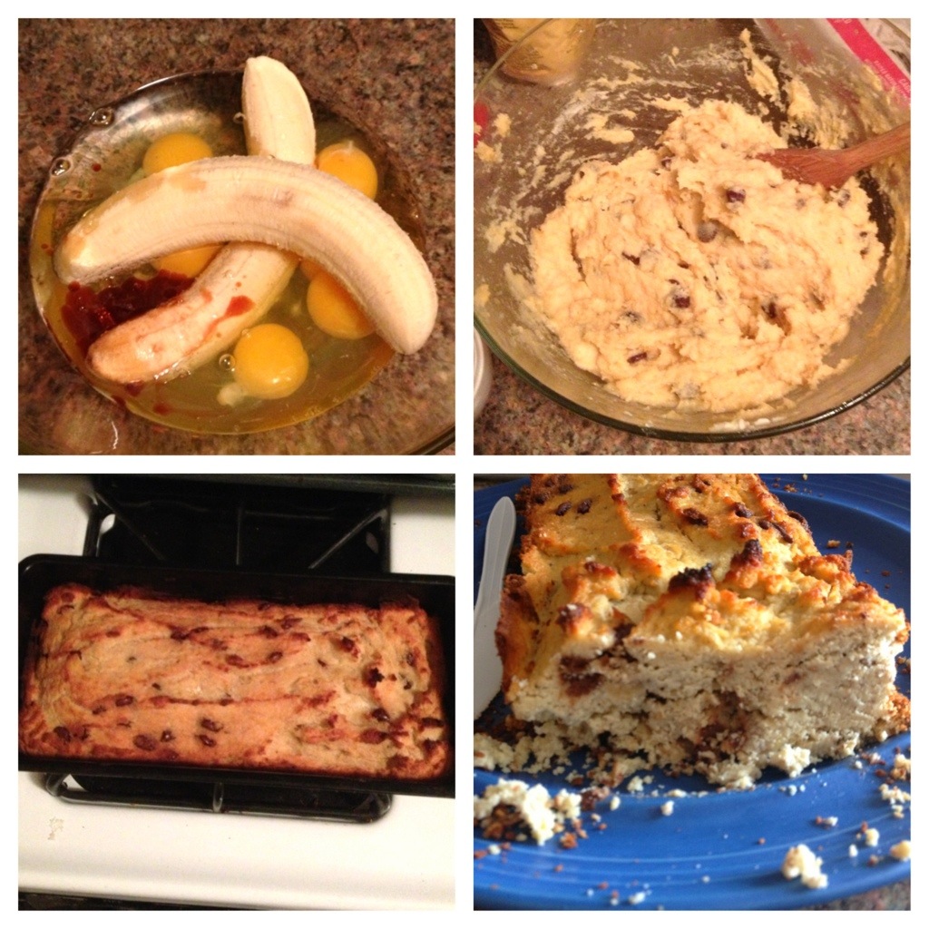 I became obsessed with coconut flour after making muffins and so decided to try Things My Belly Likes‘ recipe for banana chocolate chip bread.