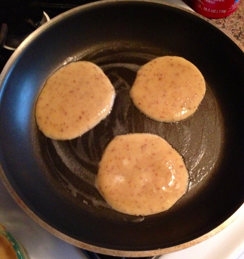 I did start by referencing a recipe for banana pancakes from The Skinny Confidential, which claims that you can make pancakes out of just bananas and eggs, and maybe a little flax seed. I added in allspice and nutmeg as well. And I’m sure it would have worked, except that I didn’t pay any attention to the ratio of things and ended up using 1 egg with 3 bananas instead of 2 eggs and 1 banana. I added in extra flax meal in order to compensate which didn’t work, and just like with the vegan version of my mandarin almond cake, too much flax in something is gross.