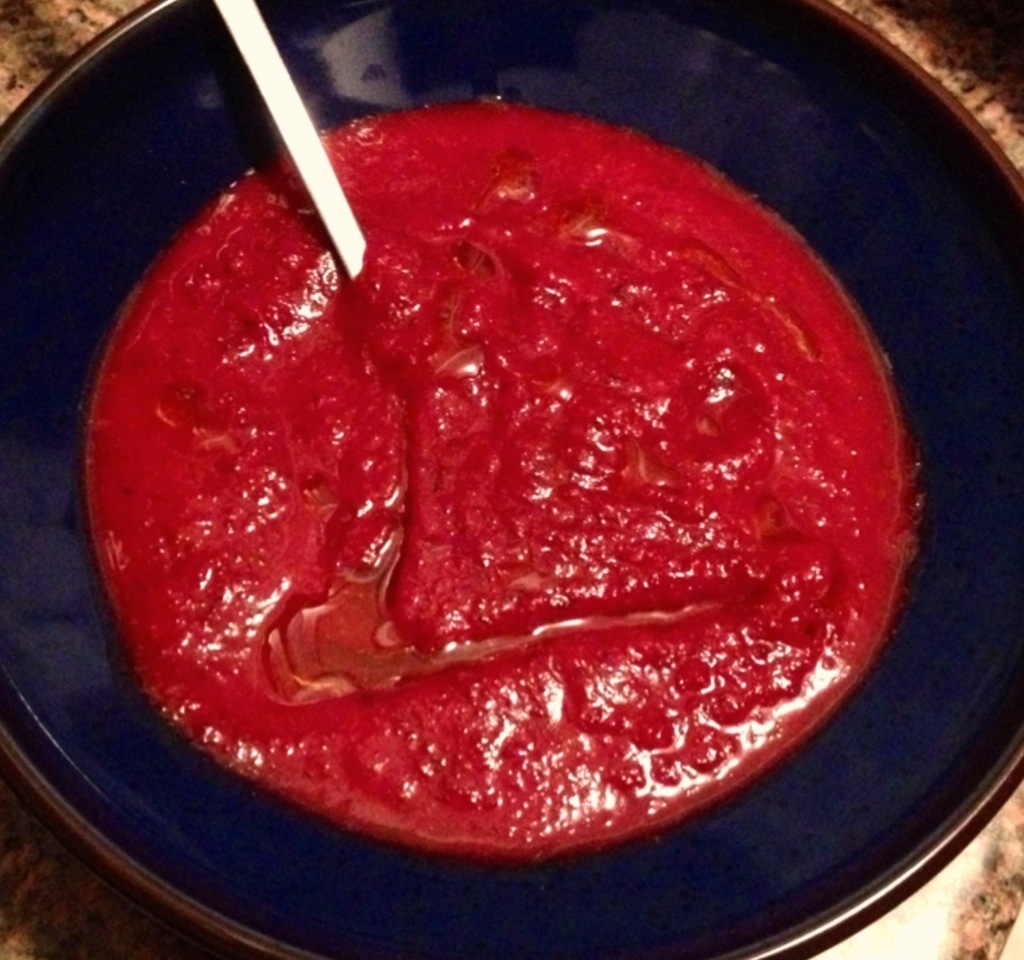I did end up making soup with the roasted beets and squash that didn’t make it into the sausage dish and it was delicious and easy. All I did was: