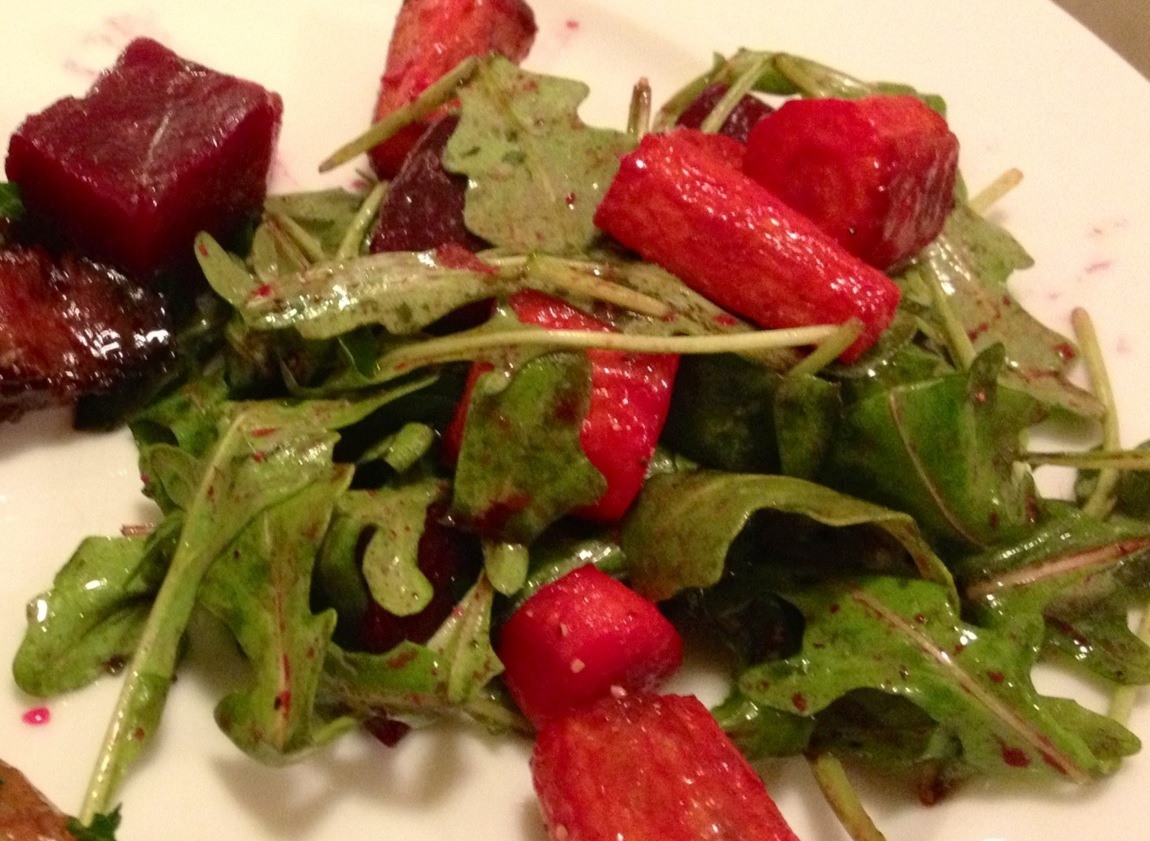 Roasted Beet and Carrot Salad with Arugula and Limonade Dressing