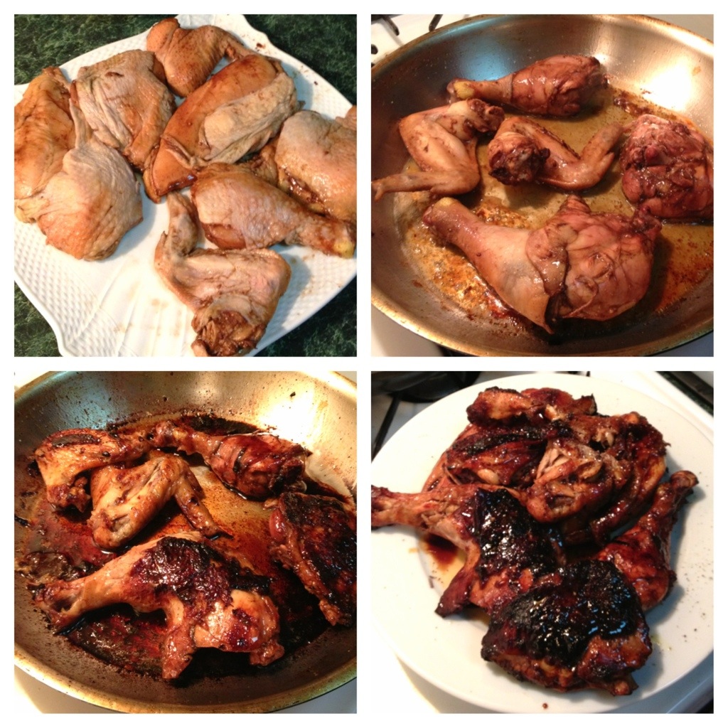 – Prepare 2 pans that can go on the stove and in the oven (one for the breast pieces and one for the pieces with bone – apparently those take longer to cook) with canola oil and get the pans really hot before you add the chicken skin-side down (this helps them not stick!)