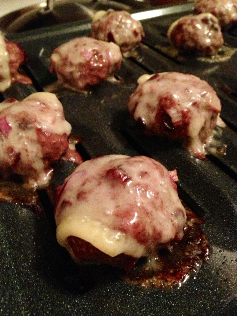 The result was awesome – meaty burgers with this tart, sweet burst and gooey cheese on top – mmmmm. I’m glad I still have a couple left for lunch today!
