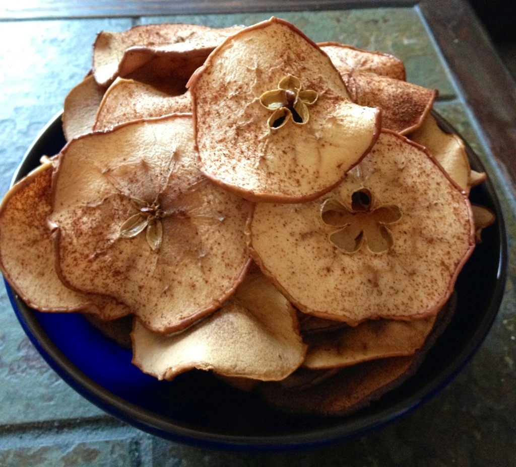 – Bake at 225*f for ~90 minutes or until chip-like, flipping once. Be careful not to let them burn or get too dark (which will be more likely if you cut them toooo thin)