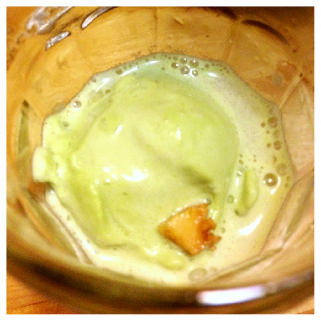 We had homemade kombucha flavored with ginger and lime (just throw those into the plain kombucha after you’ve taken it out of the jar with the scoby) and decided that vanilla ice cream would be delicious as a float, but that green tea ice cream could be amazing, and it would stick with the whole ‘tea’ theme.