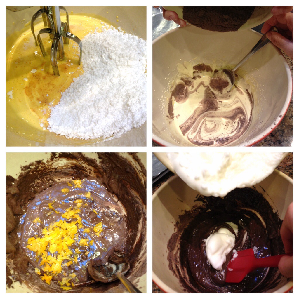 – Fold in 2tsp orange rind (This ended up being very prominent! More prominent than the cocoa, I would say. I would also say that you could probably add other things instead of, or in addition to, the orange rind. Maybe something amaretto, or hazelnut, or a different fruit essence?)