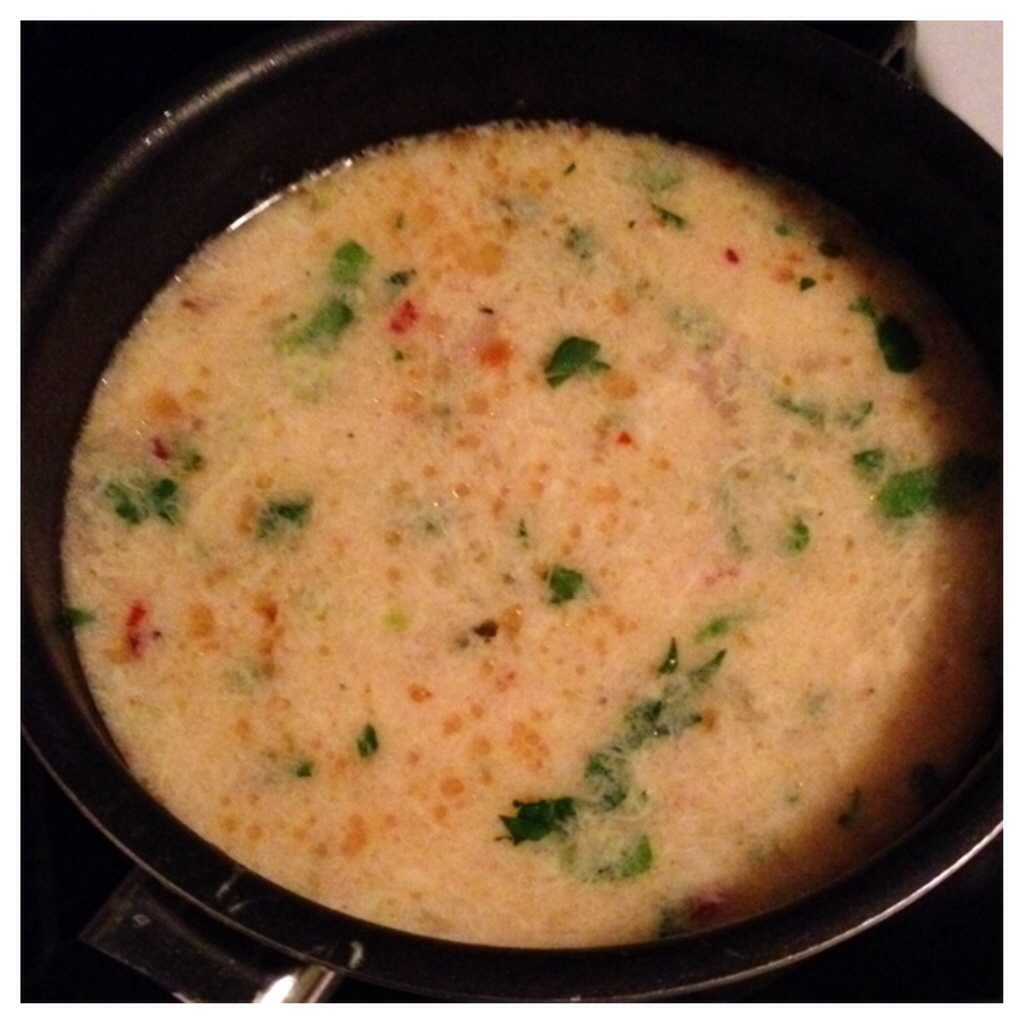 I had made this delicious and nutritious chicken stock by just putting bones with meat into my slow cooker on low for 24hrs with a splash of apple cider vinegar to kind of get a hybrid stock/bone broth. I had also become pretty sick of eating eggs in the traditional way, and I remembered my dad would always make egg drop soup which I hated as a kid, but I thought I might like it as an adult. I was right! This was delicious, and perfect for when the warm weekend was just a tease and we’re back down in the 20s – awesome.