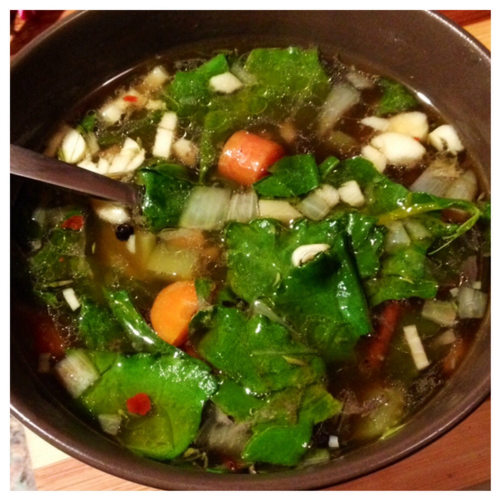 Well, I’ve been struck with it again – a winter cold, or maybe the flu, not sure, but definitely sure about the winter part. But this soup helped! I was looking for some sort of garlicky chicken soup, thinking I had chicken stock in my freezer when it was actually beef bone broth. But this recipe from macrobiotic.about totally worked, and you could do it with a veggie stock if you’re into that.