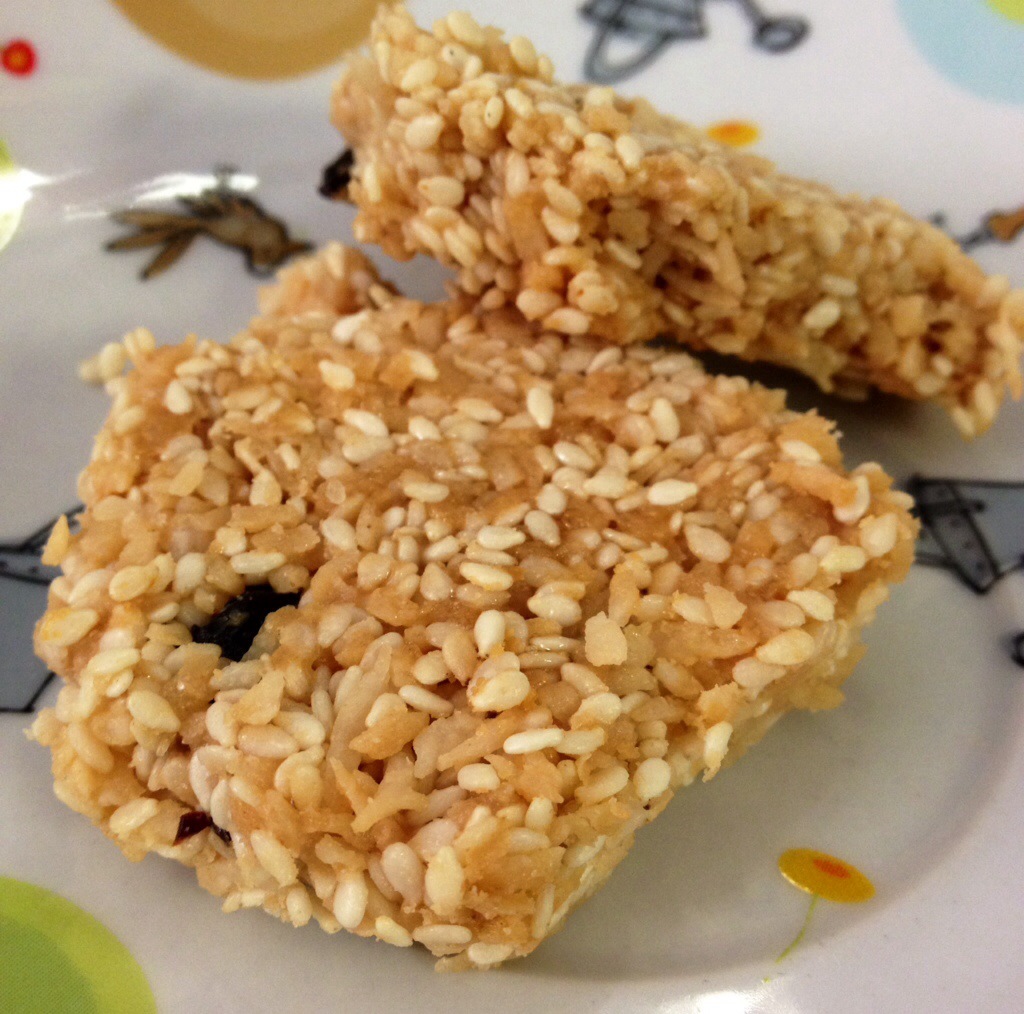 These bars really just taste like halvah, except that the texture is different, and they’re not as crazy sweet, so basically you can eat them for breakfast – or whenever – and not have to crash afterwards