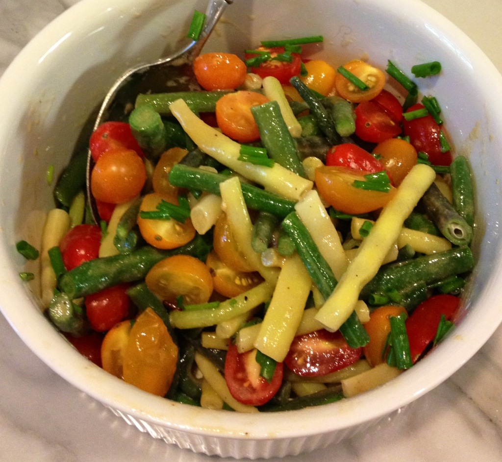 First, a note: if you start with beautiful three-colored beans, do not do anything that involves blanching them (like this recipe from Ligonier Country Market) because the purple beans will lose their color!