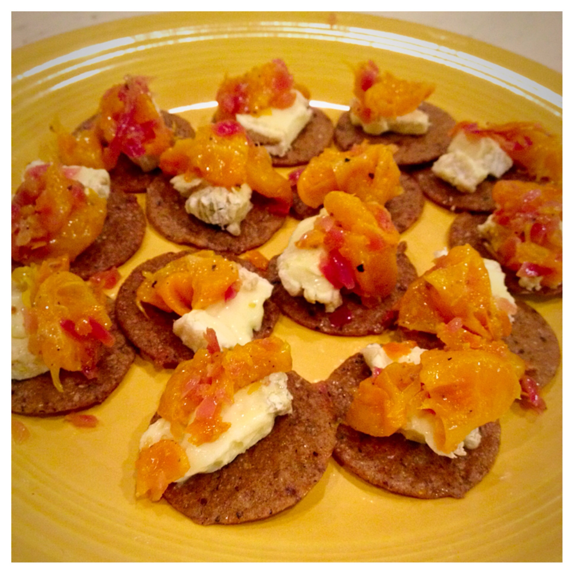 A note: This turned out pretty well but it lacked something. The answer might have been that the Brie and crackers I chose were a little overpowering, but either way I think if I made it again I would add some element of heat, like red pepper or even paprika. If you try it, let me know what you think!