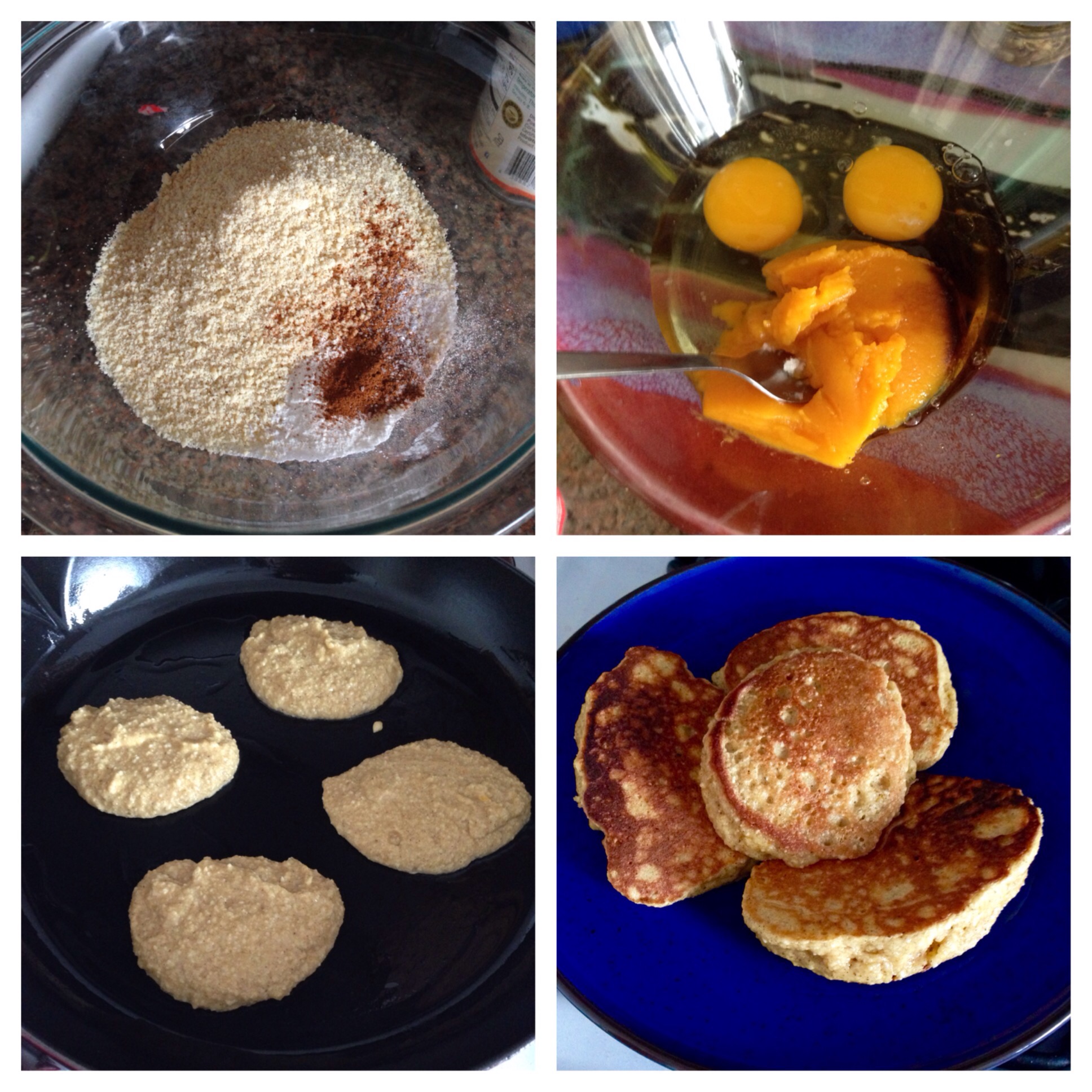 I’ve been lazy recently (can you tell?) but this morning I wanted to make something substantial, and I had a couple eggs and I remembered some cashew meal in the back of my cupboard. I found this recipe from Every Day Maven that called for coconut milk which I didn’t have, and so I decided to substitute pumpkin (they both come in a can, right?) and it totally worked out! Here’s how it went down: