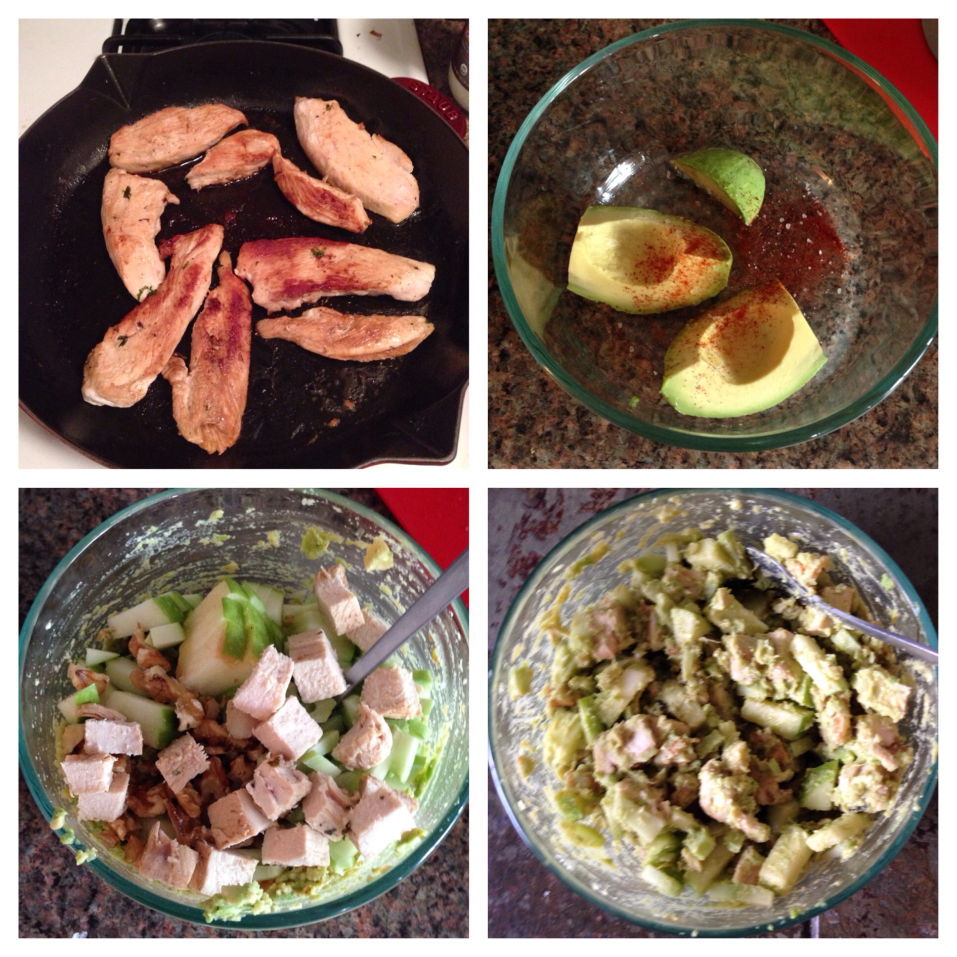– Sauté a bunch of chicken breast with coconut oil, salt, and pepper until it’s browned and cooked through