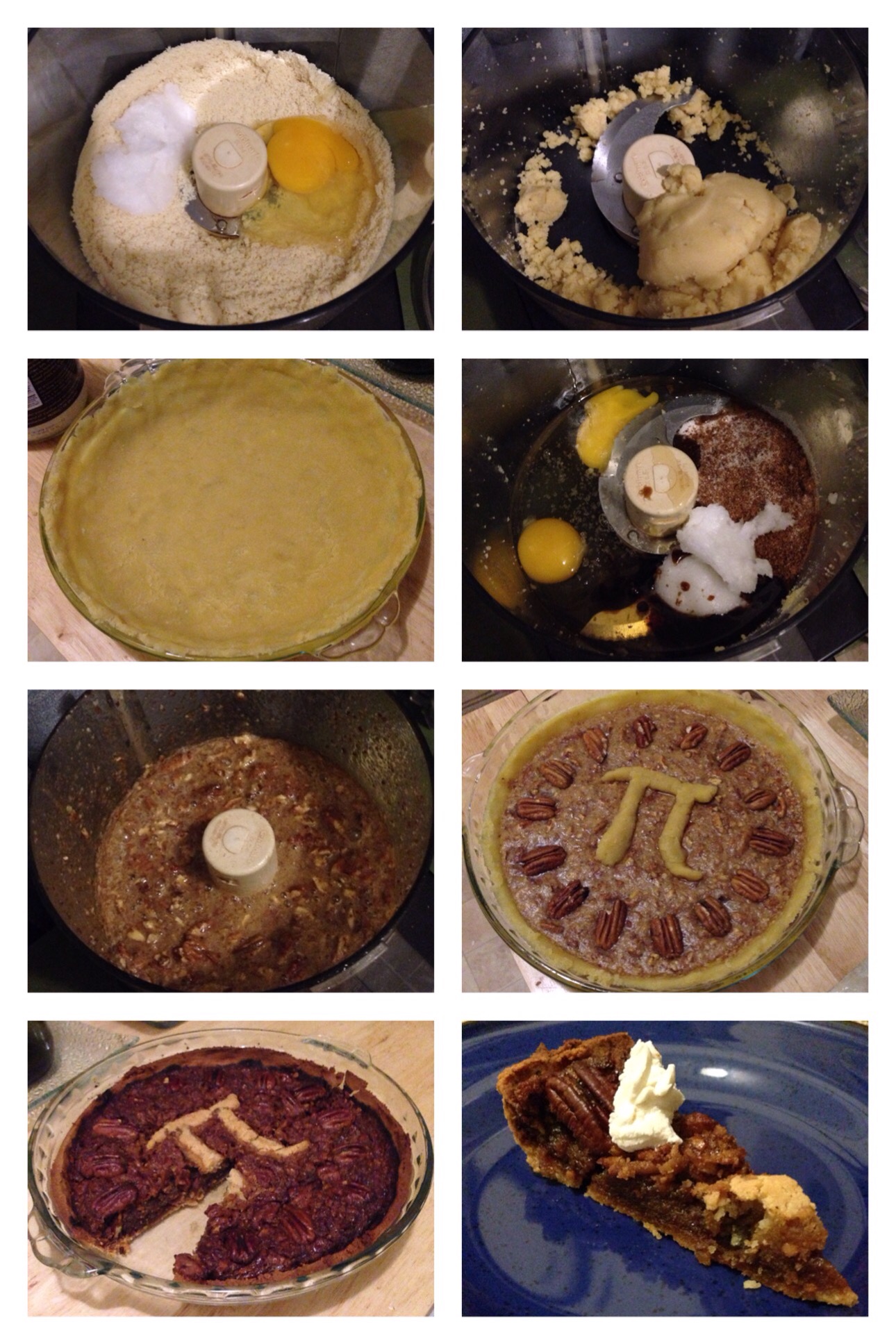 I got this recipe from About.com, and I got the pie crust recipe from Elena’s Pantry – seriously the easiest pie crust on the planet – easier than regular non-GF/paleo pie crust ’cause this one you don’t have to roll out or anything. All you do is blend together until it forms a ball: