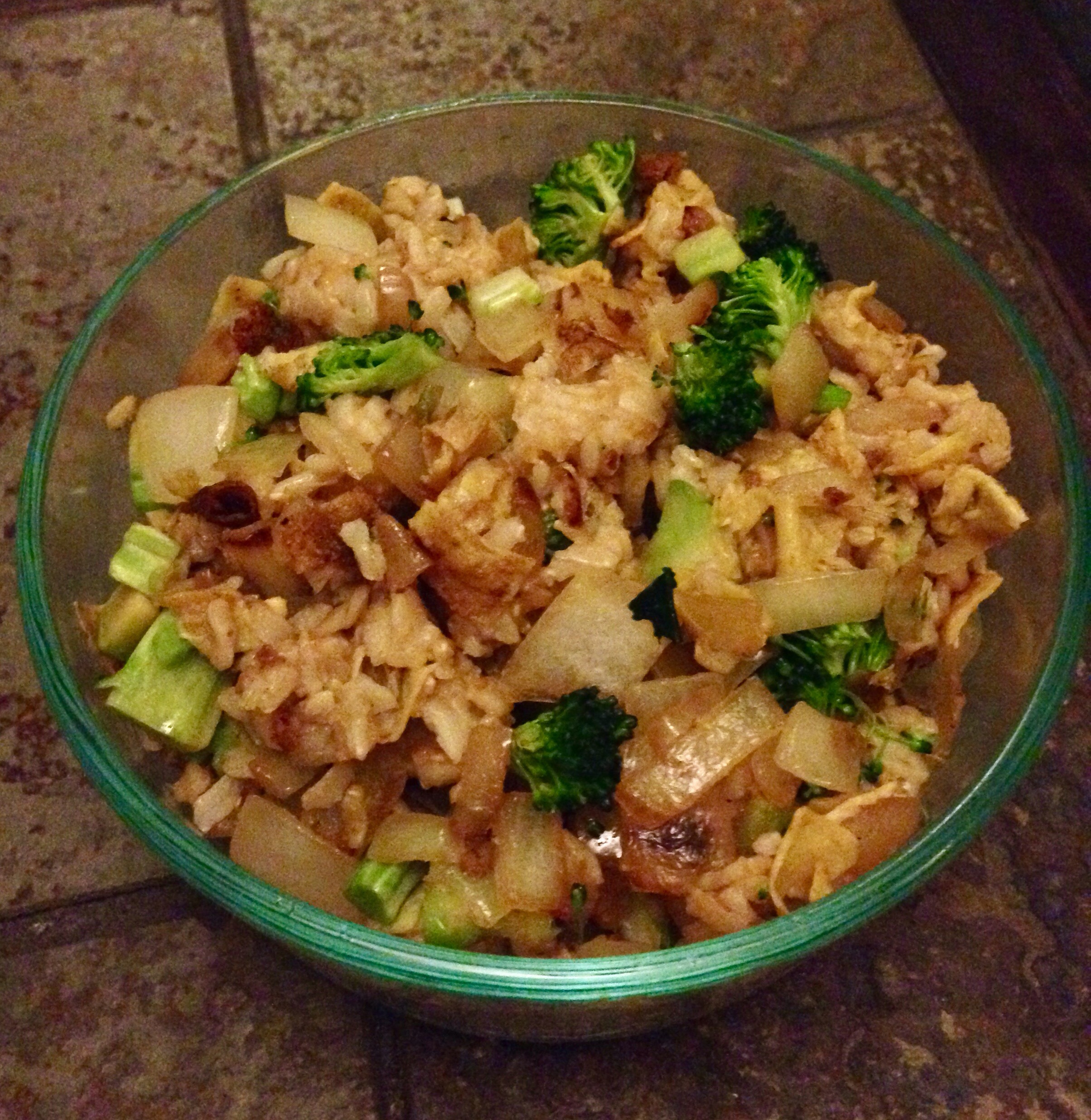 I wanted to make fried rice because I wanted comfort food, and I thought “why not actually look up a recipe” instead of just cracking an egg into rice with Tamari and calling it a day? So I found this recipe from Food.com (and then as soon as I made it I remembered what Chinese fried rice tastes like and wished I’d made Vietnamese fried rice instead, but next time!) Here’s how it went: