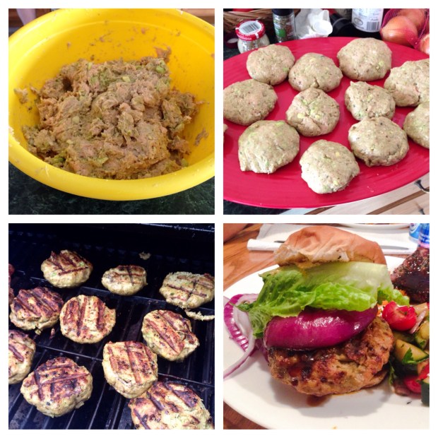 My friends and I made our (annual?? I hope!) trip upstate for Memorial Day weekend, and on my friend Adrianne’s and my day to cook we made these genius burgers from Laughing Spatula (and smashed sweet potatoes and tomato-cucumber salad – posts coming soon!) and they were AWESOME. Here’s how it went: