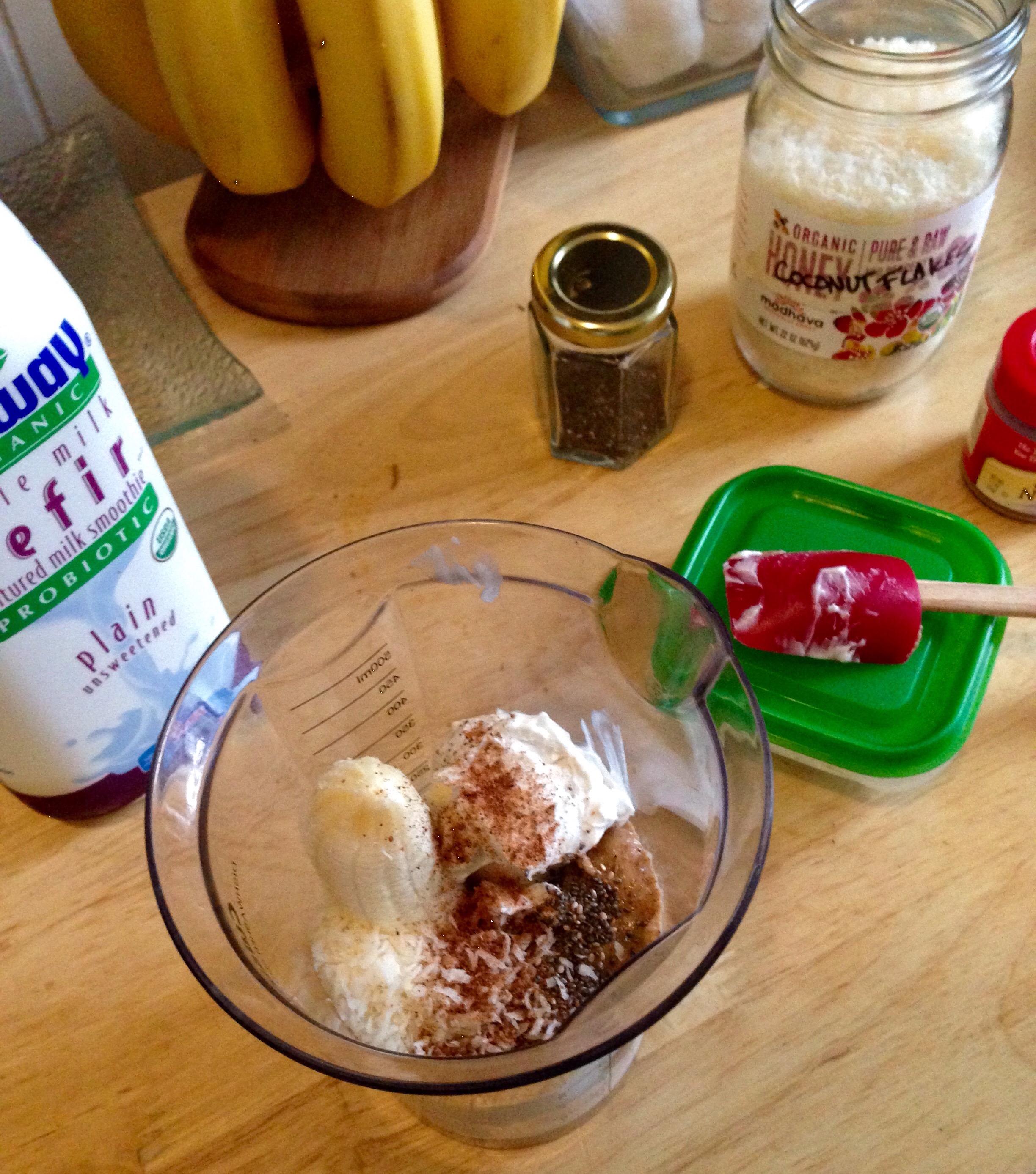 — Kefir – or yogurt or something vegan if you prefer (maybe half a cup?)