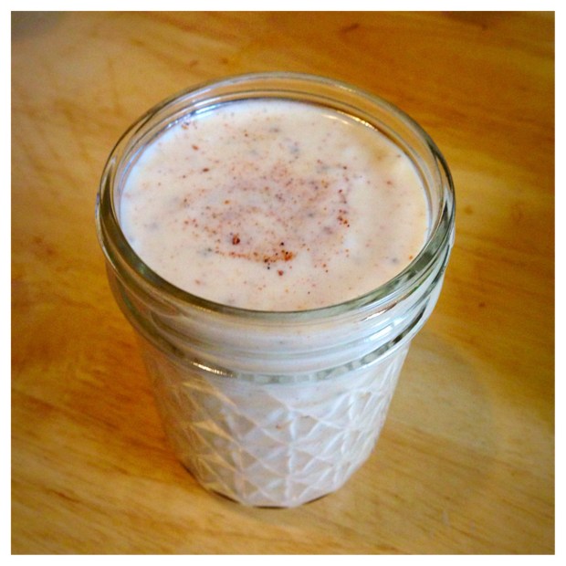 Almond Butter, Banana, Coconut, Kefir Smoothie with Nutmeg and Chia