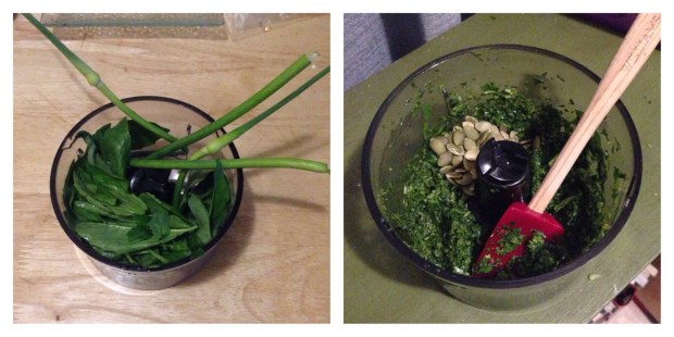 Simple Basil Garlic Scape Pesto with Pumpkin Seeds