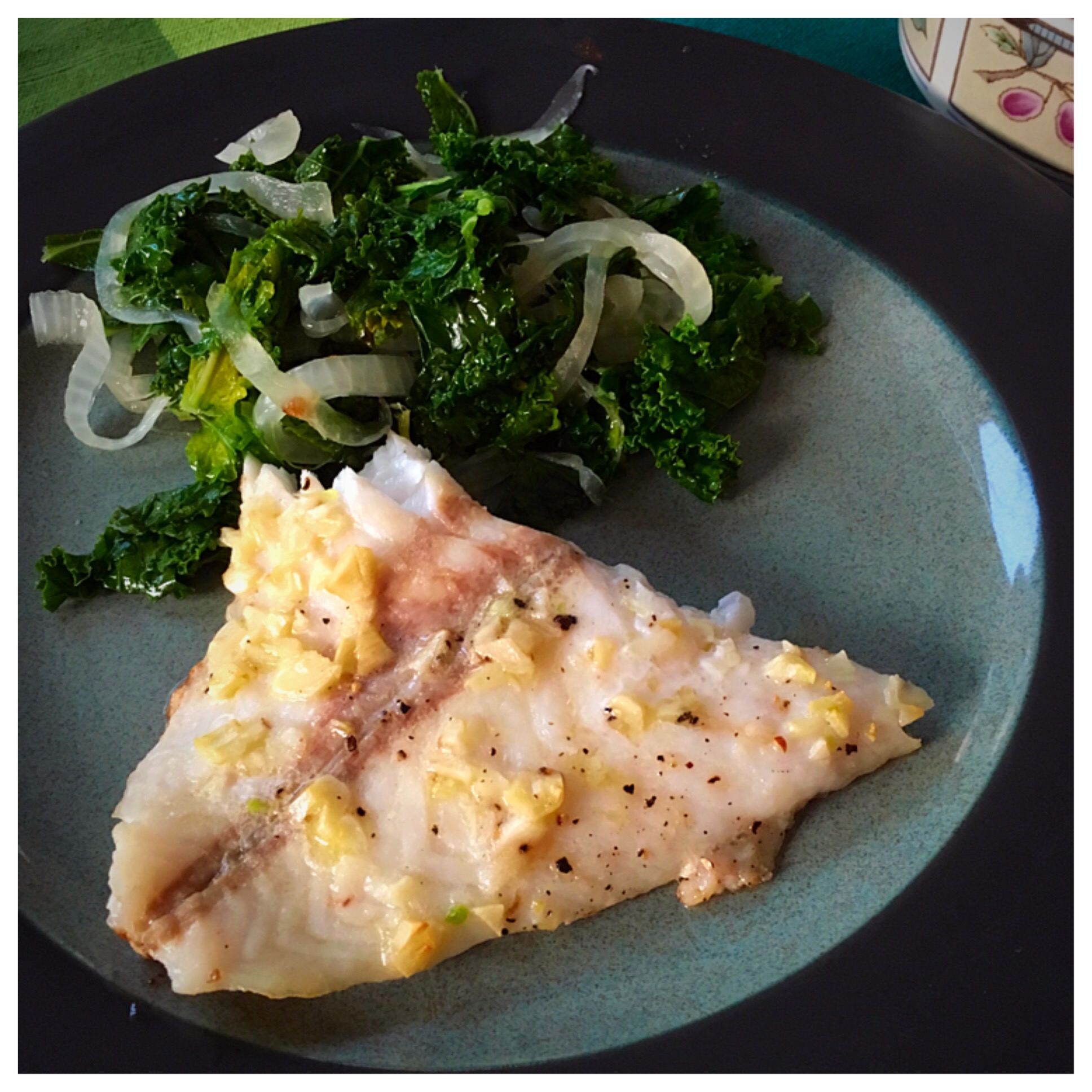 I was left to my own devices at the grocery store with the request of “fish”… so I asked the guy behind the counter what I should get. He said the best thing they had was orange roughy (which I had never heard of) and that there was a great, simple recipe with garlic that would come up if I google it. And really all you have to do is google “fish recipe” and it’s one of the first ones: from Big Oven, of all places. And even though it was super simple, it was SO GOOD! I mean… loads of garlic and butter are helpful… but the fish is also awesome. Totally recommended! Here’s how it goes: