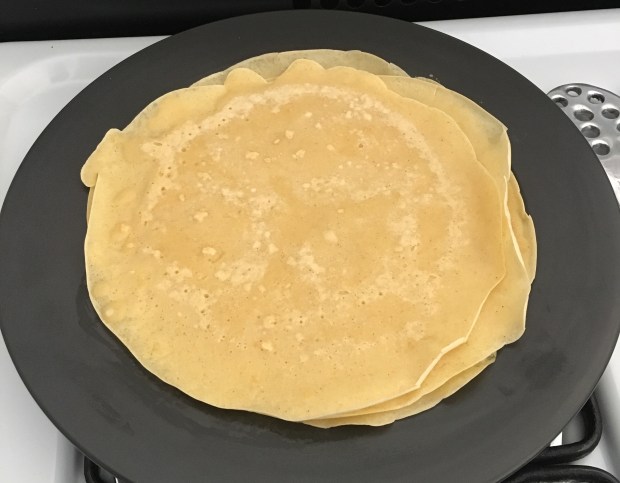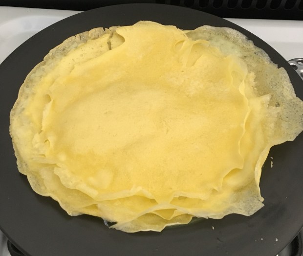 *My first batch was the tapioca one, and my crepe-swirling skills certainly improved as I went. Although I do kind of like the lacy effect of not using enough batter…. not sure how that will work in a cake, but I may just decide to find out!