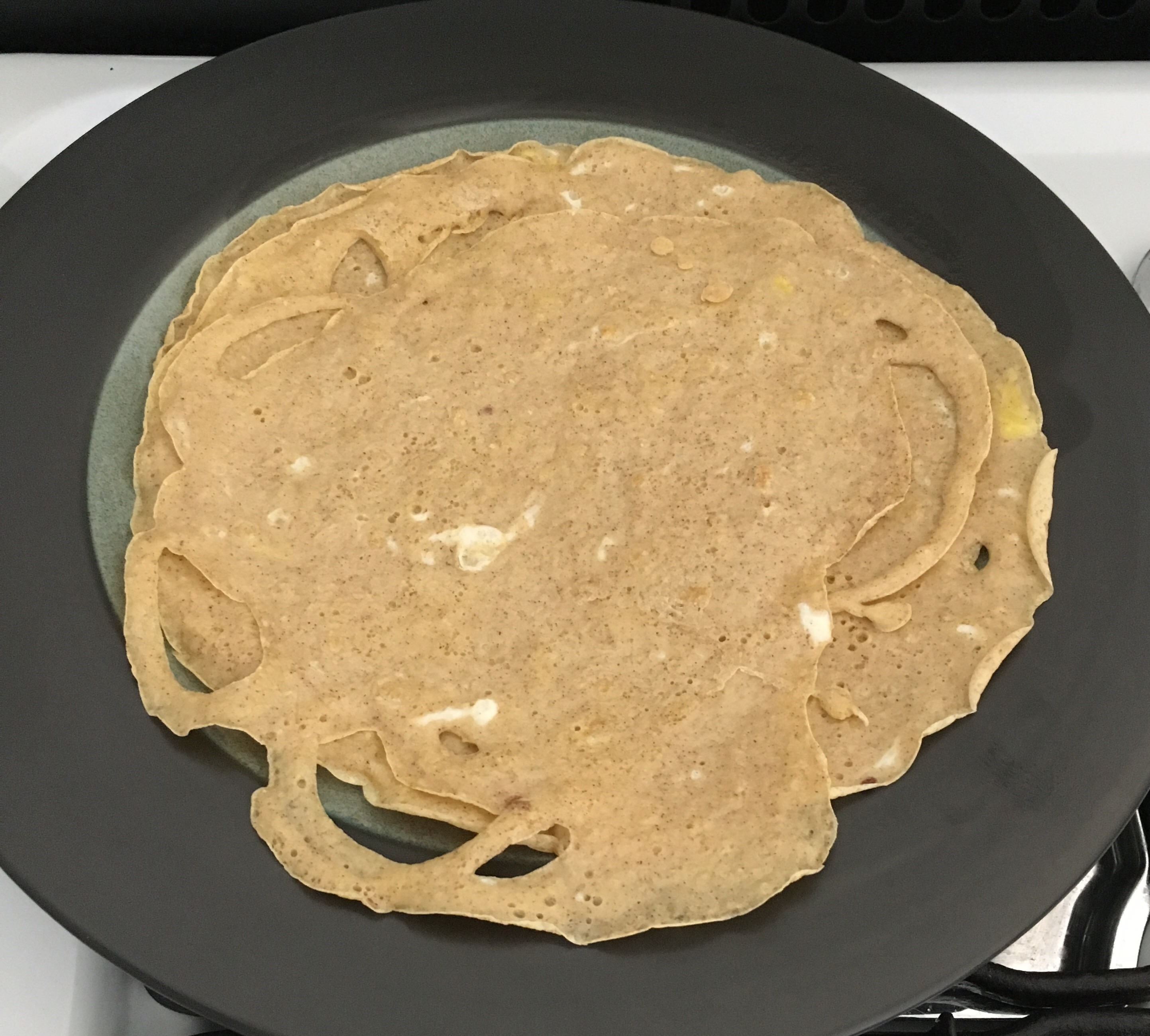 For all of them, I let them sit for a while (while I made or cooked the other batters) and I used a non-stick pan, ungreased, and about a quarter cup of batter at a time on med-high heat, flipping once the edges started to curl.