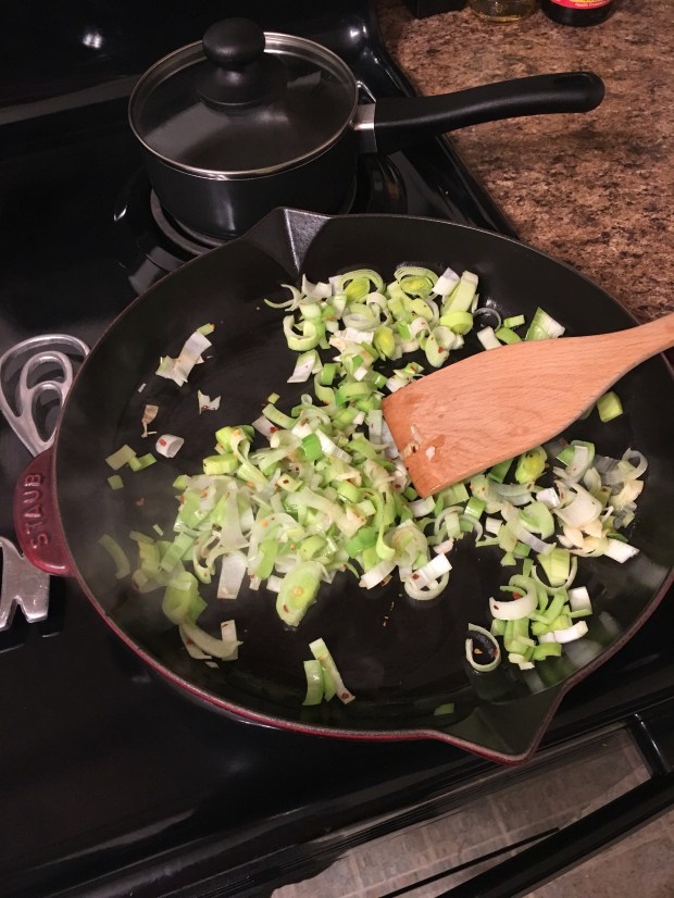 You just sauté your leeks with some garlic and chili flakes until they’re soft (and honestly if there is anything I would do differently it would be more garlic – always)
