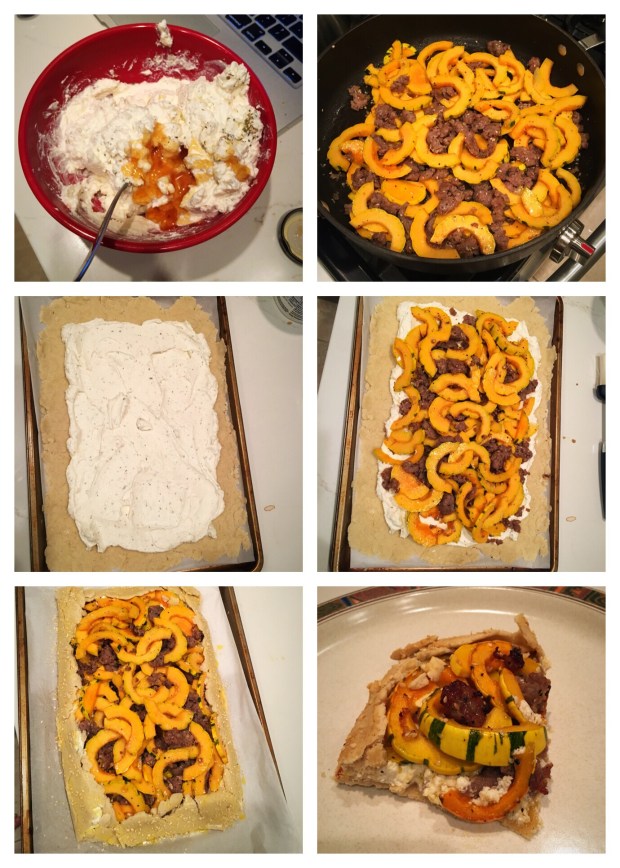 – Cut 3/4c cold butter into 1 1/2c flour and 1/4tsp salt. (They say to use 1c white and 1/2c buckwheat. We just used plain gf flour for the whole thing, and it worked out) (They also say to make the crust in a food processor, but I did it by hand and it was fine)