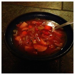 I had carrots, parsnips, and celery wilting in my fridge, as well as half a thing of diced canned tomatoes (transferred to a jar) leftover from the harvest curry. Soup time! Dead vegetables… Continue reading
