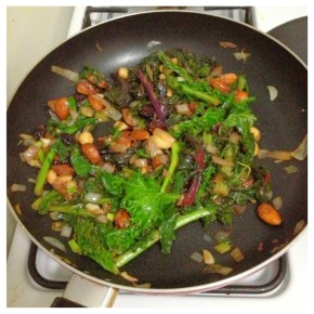What I had in my kitchen tonight was some stir-fry greens that were dying, some scallions that were almost dead, dried unsweetened cherries, and salted mixed nuts (the latter 2 I’d originally bought… Continue reading