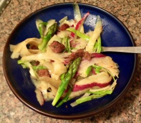 First of all, if you’re ever wondering what to do with your dejected broccoli stems, shred them up and put them in salad. They make a great replacement for cabbage in cole slaw,… Continue reading
